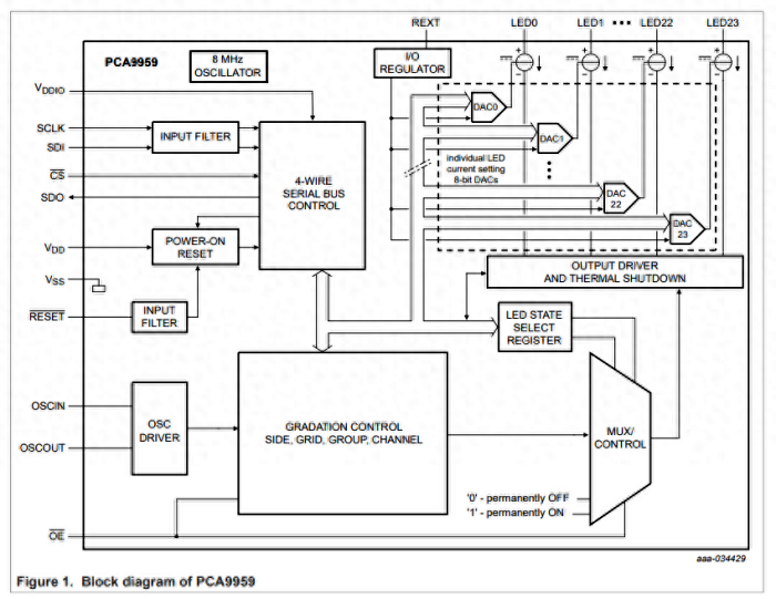 24個恒定預設電流輸出通道,可達63mA,并允許高達5.5V時,關斷