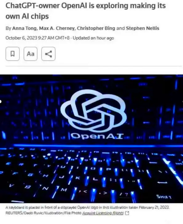 據(jù)國外媒體報道稱,ChatGPT背后的OpenAI計劃自研AI芯片,以解決其所依賴的AI芯片短缺以及成本高昂問題,甚至已經(jīng)開始評估潛在的收購目標(biāo)。