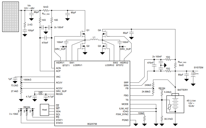 TI德州儀器生產的BQ25756 是一款具有雙向功率流支持的寬輸入電壓、開關模式降壓/升壓鋰離子、鋰聚合物或磷酸鐵鋰 電池充電控制器。該器件不僅能提供精確的充電電流和充電電壓調節,還能提供自動充電預調節、充電終止和充電狀態指示,可在寬電壓范圍內實現電池高效充電。該器件集成了降壓/升壓轉換器的所有環路補償功能,因此可提供易于使用的高密度解決方案。 在反向模式下,該器件從電池獲取電力并通過添加的恒定電流環路調節輸入端子電壓來實現保護,從而支持 USB-PD EPR 功率配置。