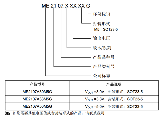 ME2107 是一系列高效、低功耗、帶有使能真關斷 及短路保護功能的 PFM 控制同步升壓 DC-DC 轉換器。 內置使能真關斷功能,使能關斷時,輸入輸出真正斷開, 系統消耗電流極低,且具有短路保護功能,提高設備使 用周期和可靠性。 ME2107 可提供 1.8V~5.0V 輸出電壓,步進 0.1V。 芯片 0.9V 輸入時可啟動輸出 3.3V 電壓帶 1mA 以上負 載。適合應用單節堿性、鎳氫干電池供電設備。同步升 壓,SOT23-5 封裝,外圍僅需要四個元件,就可以完成 低輸入電池電壓升壓到所需的工作電壓。