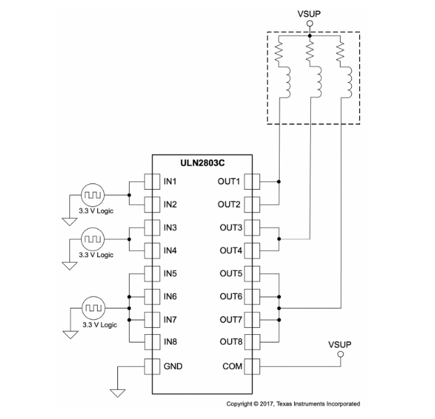 ULN2803C作為電感負(fù)載驅(qū)動器