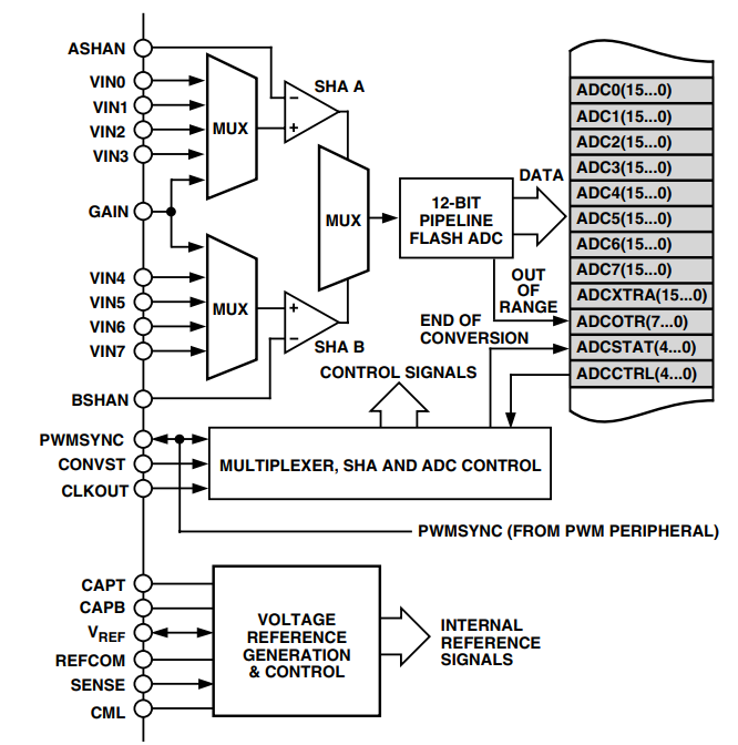 ADMC401BST包含許多專用電機控制外設。第一個外設是高性能、8通道、12位ADC系統,可在4對輸入上提供雙通道同步采樣能力。內部精密基準電壓源也可作為ADC系統的一部分。此外,以中心為基準的三相、16位、PWM發生單元可用于產生高精度PWM信號,且處理器內核的開銷極小。ADMC401BST還包含用于位置傳感器反饋的靈活增量式編碼器接口單元、兩個可調頻率輔助PWM輸出、12路數字I/O、一個2通道事件捕獲系統、一個16位看門狗定時器、兩個16位間隔定時器(其中一個可關聯至編碼器接口單元)和一個中斷控制器,用于管理所有外設中斷。最后,ADMC401包含一個集成上電復位(POR)電路,可在器件上電時生成所需的復位信號。