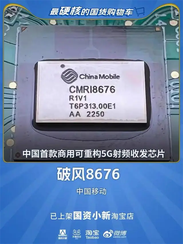 《科創(chuàng)板日?qǐng)?bào)》記者今日注意到,在國(guó)資委淘寶店鋪“國(guó)資小新”內(nèi),上架了一款中國(guó)移動(dòng)“破風(fēng)8676”芯片,該款芯片是中國(guó)首款商用可重構(gòu)5G射頻收發(fā)芯片,淘寶售價(jià)為999999元,不過(guò),現(xiàn)在只能展示加購(gòu)不能購(gòu)買(mǎi)。