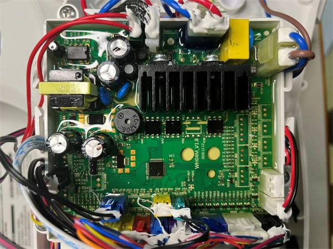 暖風風機位于主控板下方,其加熱及電機控制接線通過接頭接入主板。