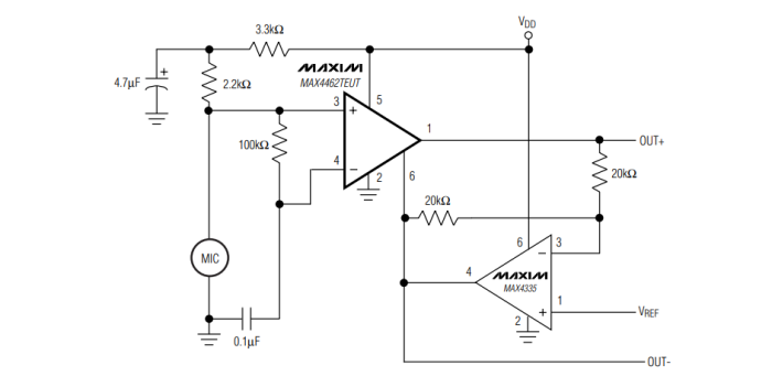 差分輸入/輸出麥克風放大器電路圖
