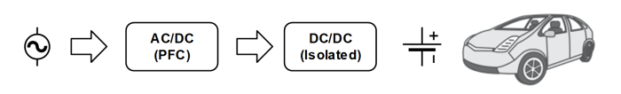 車載充電器(OBC)是電動汽車和混合動力汽車的重要組成部分(HEV)。OBC通常由一個AC/DC(功率因數校正電路)和一個隔離式DC/DC轉換器,如下圖所示: