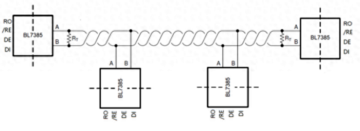 接收器輸入阻抗為1/8單位負載, 256個總線節點(BL7385)