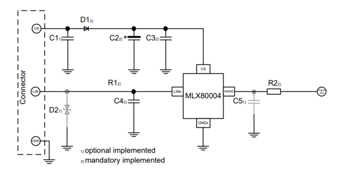 集成LIN 主節點和從節點的端(電阻和去耦二極管)