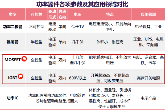 功率器件各項(xiàng)參數(shù)及其應(yīng)用領(lǐng)域?qū)Ρ?/span>