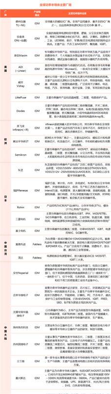 功率半導(dǎo)體主要廠商概覽