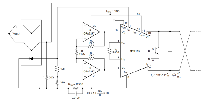 應(yīng)用圖:具有二極管冷端補(bǔ)償?shù)臒犭娕嫉褪д{(diào)電壓、低溫漂環(huán)路測(cè)量