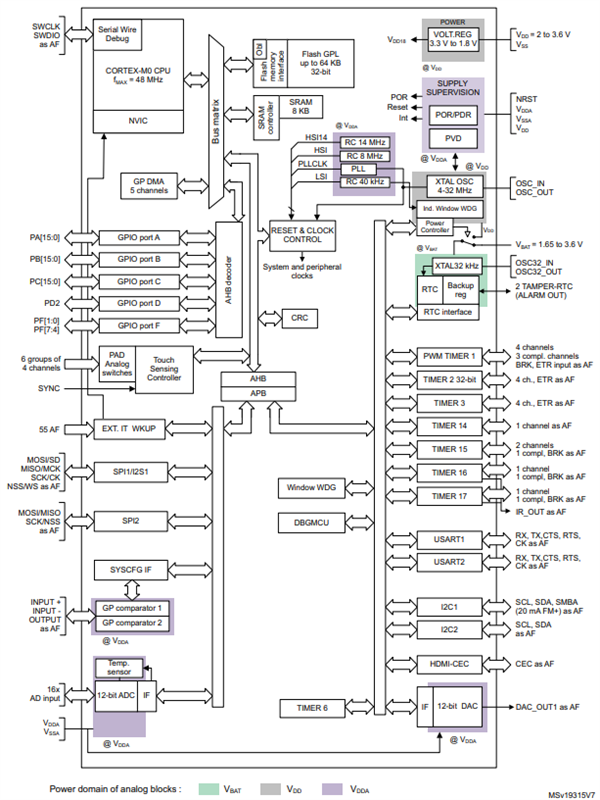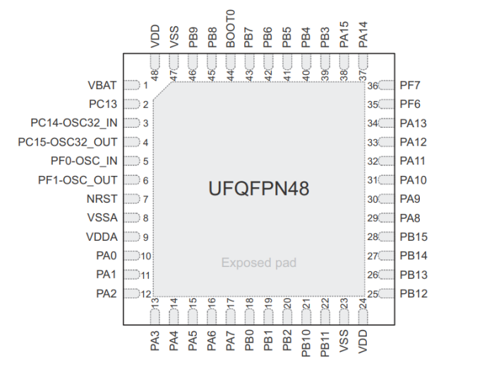 STM32F051C8U6微控制器在-40至+85°C的溫度范圍內(nèi)工作,電源電壓為2.0至3.6 V。一套全面的節(jié)能模式允許設(shè)計(jì)低功耗應(yīng)用程序。STM32F051C8U6微控制器封裝引腳為UFQFPN-48,還可根據(jù)要求提供模具形式。根據(jù)所選設(shè)備的不同,還包括不同的外圍設(shè)備。