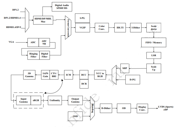 REALTEK瑞昱RTD2556QR-VL-CG監控控制器結合了一個模擬RGB輸入接口、多個DP1.2數字輸入接口與HDCP1.4、多個HDMI1.4數字輸入接口和HDCP1.4以及DVI數字輸入接口。嵌入式MCU基于工業標準8051內核,帶有外部串行閃存。