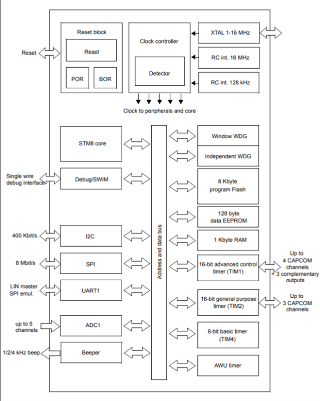 真正的數據EEPROM支持高達100000次寫入/擦除周期,先進的核心和外圍設備采用最先進的技術以16 MHz的時鐘頻率制造,強大的I/O,具有獨立時鐘源的獨立看門狗和時鐘安全系統,確保了設備的性能和穩健性。