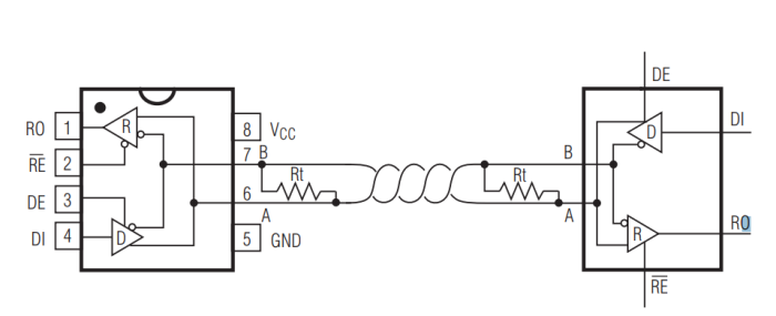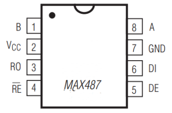 MAX487ESA具有四分之一單位負載的接收器輸入阻抗,使得總線上最多可以有128個MAX487收發(fā)器。MAX487ESA為半雙工應用設計。