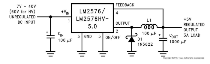 德州儀器LM2576T-5.0/NOPB電源芯片的工作原理、參數(shù)、應(yīng)用以及引腳電路圖