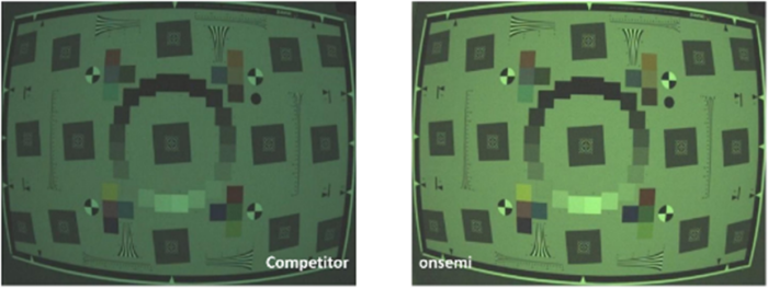 圖 1:競爭對手的傳感器(左側)與安森美 ART0220AT(右側)的對比。請注意左側圖中的低光性能下降和出現偽影
