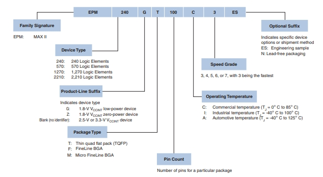 阿爾特拉EPM240T100C5N的型號解釋圖