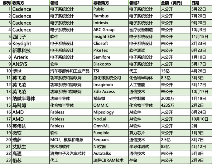 2023年部分半導(dǎo)體相關(guān)收購(gòu)案