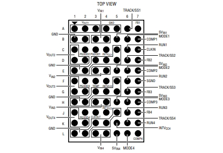 LTM4644IY#PBF外部偏置供電,輸入電壓范圍為4V~14V或2.375V~14V,輸出電壓范圍為0.6V~5.5V。其高效率的設計提供了每個通道4A連續(xù)(5A峰值)的輸出電流,只需要大量的輸入和輸出電容。