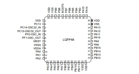 意法半導(dǎo)體STM32F030CCT6TR的引腳封裝圖