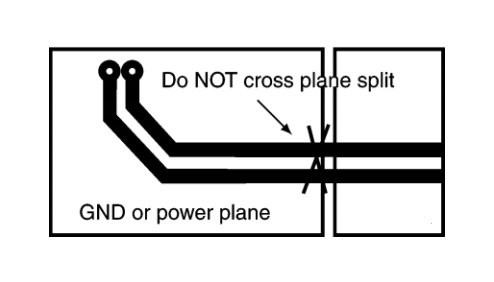 ?不要使高速信號(hào)走線穿過(guò)任何平面分割處。