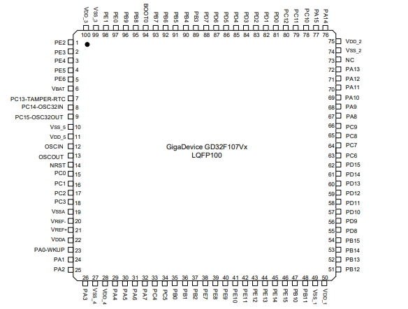 1、高性能處理能力:GD32F107VET6采用了32位ARM Cortex-M3內核,主頻可達到108MHz,具有強大的處理能力,適用于各種高性能應用場景。