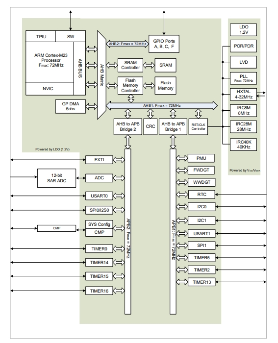 兆易創(chuàng)新GD32E230F6P6TR的功能方框圖