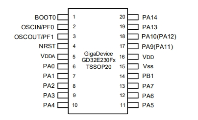 兆易創(chuàng)新GD32E230F6P6TR的引腳封裝圖