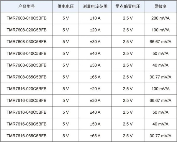 多維科技TMR7608和TMR7616系列電流傳感器芯片產品內置可編程、帶溫度補償的信號調理電路,保證了電流傳感器芯片在全溫區工況下(-40°~125°)的穩定檢測,同時,該系列產品采用了具備低輸出噪聲及高帶寬特性的TMR(隧道磁阻)技術,使芯片具有良好的分辨力和高帶寬檢測能力,適用于各種要求高帶寬、高精度的中小功率電流檢測應用。