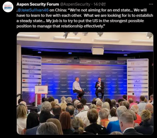 沙利文參加阿斯彭安全論壇,談及中美關系