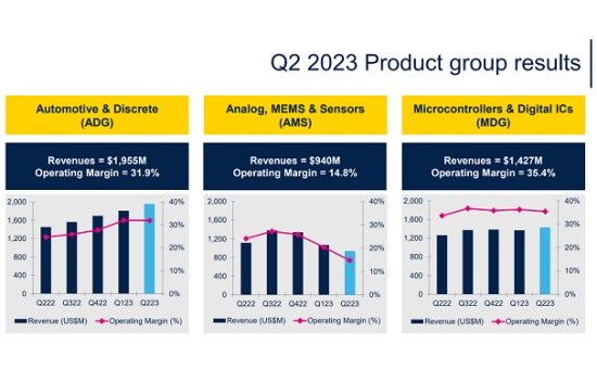 意法半導體召開2023年第二季度財報說明會。數據顯示,意法半導體第二季度凈收入43.3億美元,同比增長12.7%。毛利率49%,營業利潤率26.5%,凈利潤10億美元;上半年凈收入85.7億美元,同比增長16.1%,毛利率49.3%,凈利潤20.5億美元。意法半導體總裁Jean-Marc Chery表示,第二季度凈收入同比增長12.7%,主要得益于汽車和工業業務的持續強勁增長。
