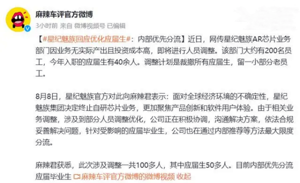 8 月 8 日消息,針對“星紀魅族調整芯片業務,優化應屆生”的消息,星紀魅族今天下午進行了回應。