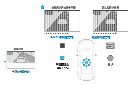 CMOS圖像傳感器從像素讀取信號時,一般會逐行縱向輸出像素。而該產品采用的讀出方法是水平方向逐列輸出的讀出方式,更容易與同樣采用水平掃描方法的機械掃描激光雷達同步。這意味著,搭載該產品的車載攝像頭輸出的信息可以更容易地與激光雷達收集到的信息融合。這將從整體上提高自動駕駛系統的檢測和識別能力。